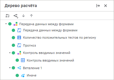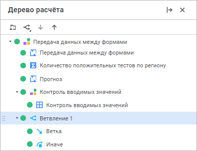 После добавления и настройки параметров алгоритма расчёта можно настроить условия выполнения алгоритма с помощью ветвлений. Ветвления используются для создания условий выполнения отдельных элементов алгоритма расчёта.