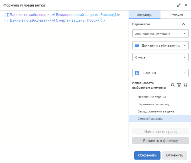 Примечание. Задание и редактирование формулы осуществляется только в окне «Формула условия ветки».