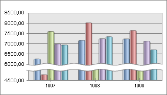 После выполнения примера для оси значений и рядов диаграммы будут использованы разрывы:
