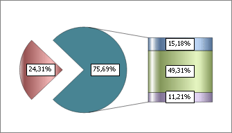Свойство PieDistanceCoef определяет расстояние от центра основной диаграммы до дольки объединенной группы рядов.