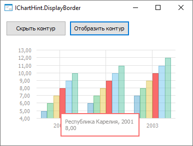 После нажатия на кнопку «Отобразить контур» и наведения на ряд диаграммы контур всплывающих подсказок будет отображен: