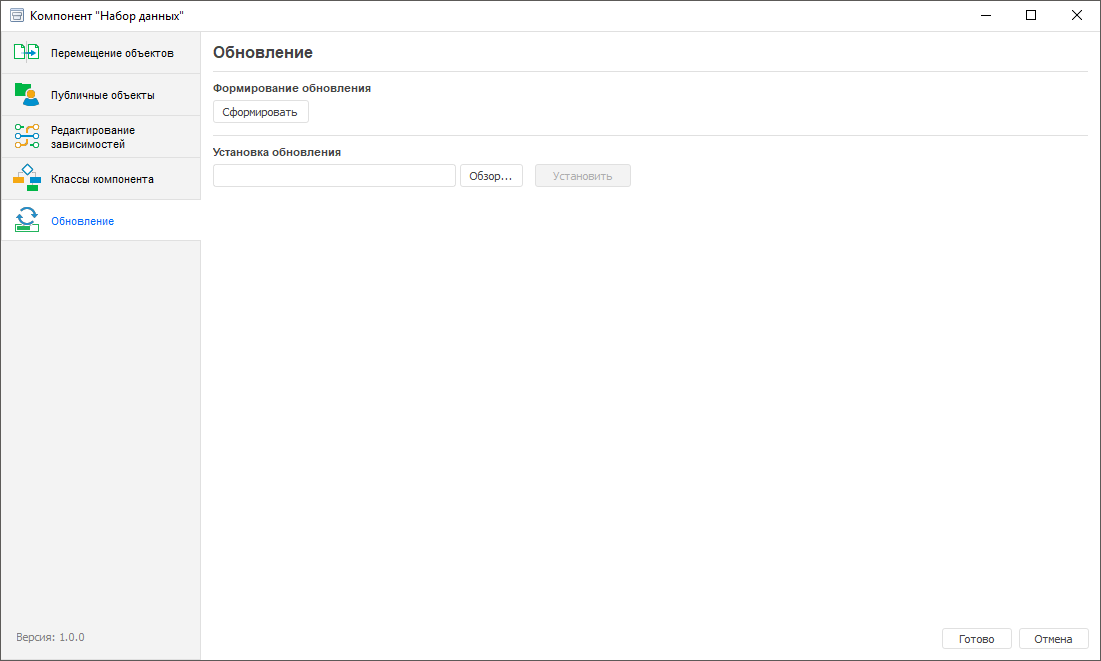 Обновления компонента в формате *.updpack формируются в настольном приложении.