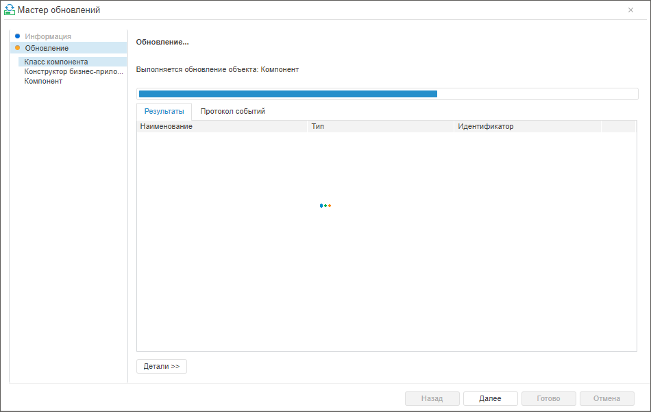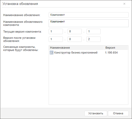 Установка обновлений компонента