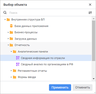Вид элемента в навигаторе. Выберите в раскрывающемся списке вид элемента на рабочей области бизнес-приложения: