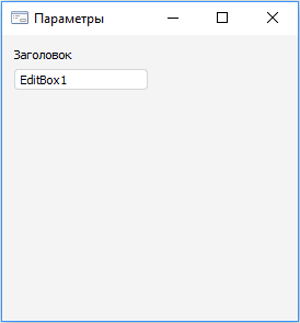 Добавьте на форму компонент EditBox с идентификатором «EditBox_Caption». Выделите данный компонент и в инспекторе объектов на вкладке «События» задайте событие «OnChange». Код обработчика события приведен ниже. Форма должна принять следующий вид: