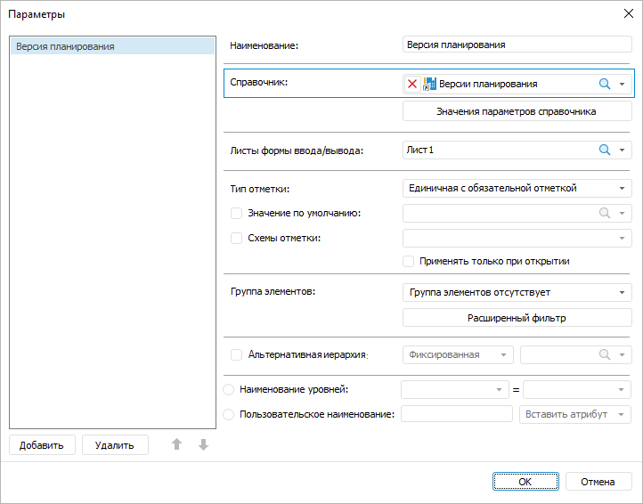 Настройте справочник НСИ, используемый в качестве параметра формы ввода.