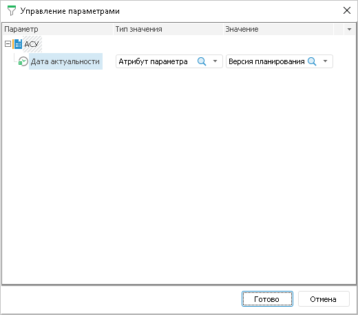 Параметр - Дата актуальности;