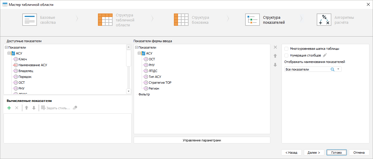 Завершите настройку табличной области.