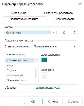 В группе/вкладке «Подсветка синтаксиса» определяются параметры отображения определенных частей кода в окне макроса.