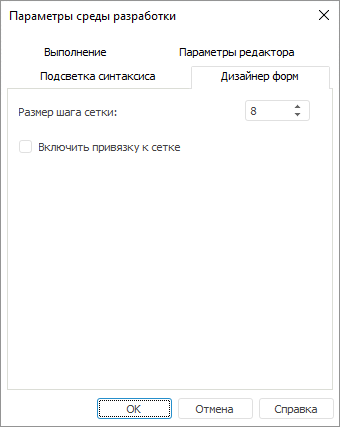 При установке флажка «Включить привязку к сетке» при размещении компонентов на форме и изменении их размеров с помощью мыши, привязка будет осуществляться к вершинам сетки. Для точной настройки места расположения и размеров компонентов при использовании мыши необходимо удерживать клавишу ALT.