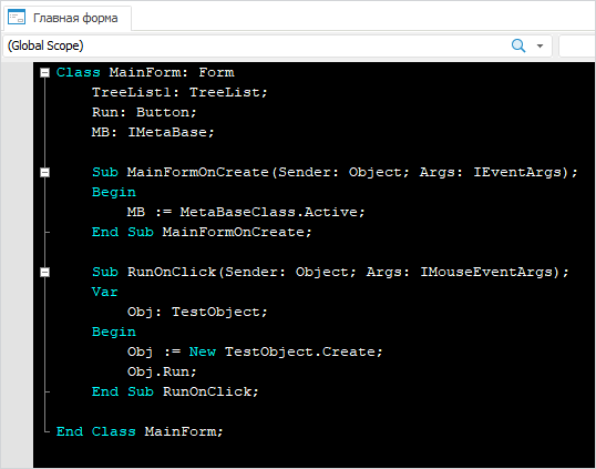 Отображать раскрывающиеся блоки. Управляет видимостью знаков иерархии, позволяющих свернуть в одну строку цикл, процедуру, класс и т.п. По умолчанию флажок установлен;