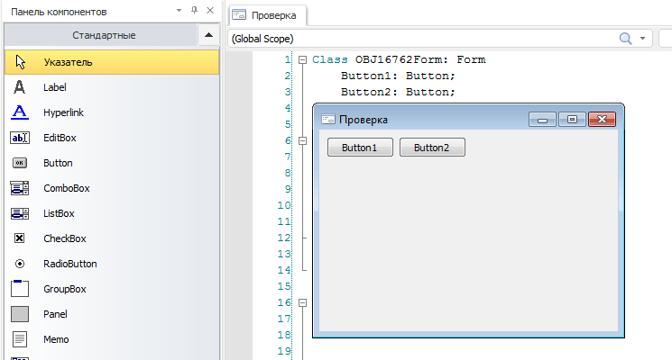 щелкнуть в том месте формы, куда необходимо разместить компонент;