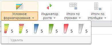 Метод getTableCFormatButtonMenu возвращает меню «Условное форматирование» на ленте инструментов экспресс-отчета.