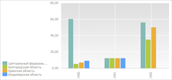 Для выполнения примера необходимо сначала запустить сценарий, приведённый на странице описания свойства EaxChartView.LegendPosition. Теперь скроем надписи для всех рядов диаграммы: