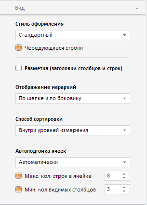 Класс TableViewPanel реализует вкладку «Вид», входящую в состав панели свойств экспресс-отчета.