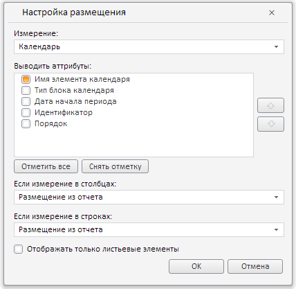 sub_image.gif setCheckedAllAttributes Метод setCheckedAllAttributes отмечает все атрибуты текущего измерения в диалоге для настройки размещения измерений.