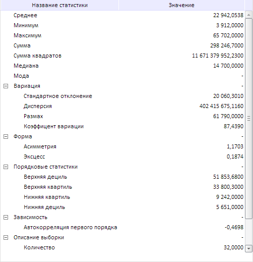 Компонент StatTreeView реализует диалог «Статистические характеристики», отображающий дерево со статистическими характеристиками данных экспресс-отчета.