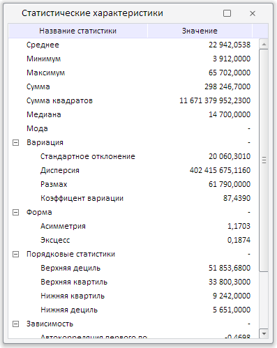 Компонент StatisticsWindow реализует окно диалога «Статистические характеристики», отображающего дерево со статистическими характеристиками данных экспресс-отчета.