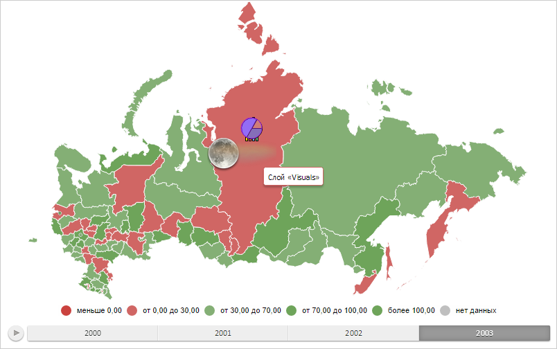 Для выполнения примера необходимо наличие на html-странице объекта типа PP.MapLayer (см. страницу описания свойства MapLayer.addSubLayer) с наименованием «layer». Отобразим показатели карты друг за другом: