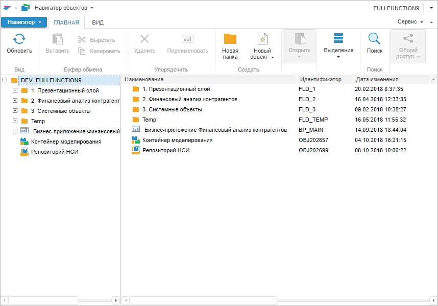 Компонент Navigator представляет собой навигатор объектов репозитория платформы.