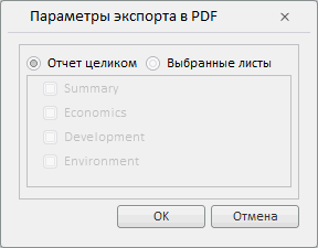 Компонент PdfExportDialog представляет собой диалог для экспорта отчета в формат *.pdf.
