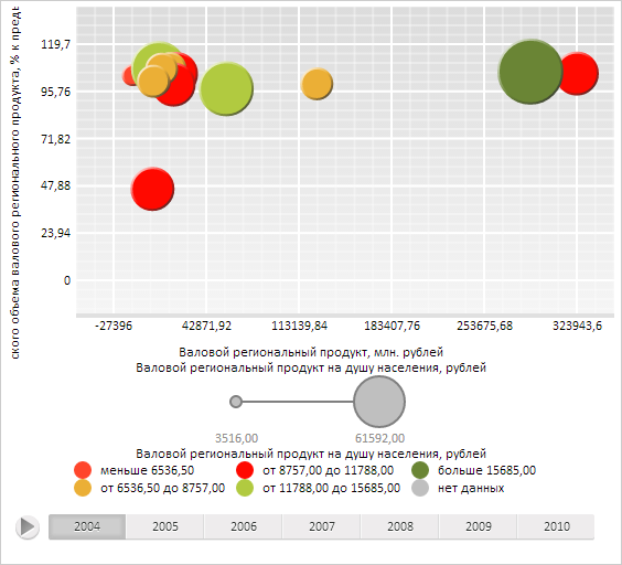 В результате выполнения примера в пузырьковой диаграмме были отображены данные следующего года:
