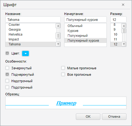 Текст примера для проверки настроек задается свойством SampleTextString.