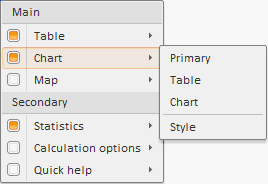 В левой части пункта меню может быть установлен флажок, переключатель или изображение.