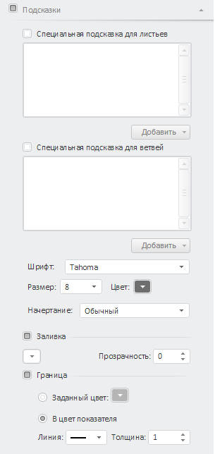 Страница «Подсказки» в мастере для настройки деревьев выглядит следующим образом: