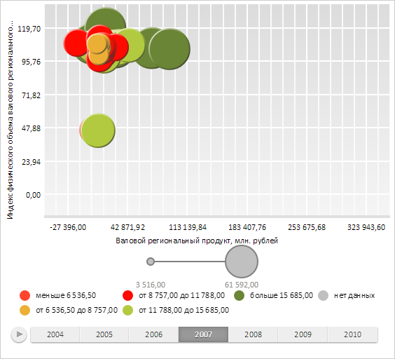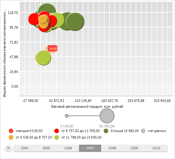 В результате на пузырьковой диаграмме была отображена история первого пузырька:
