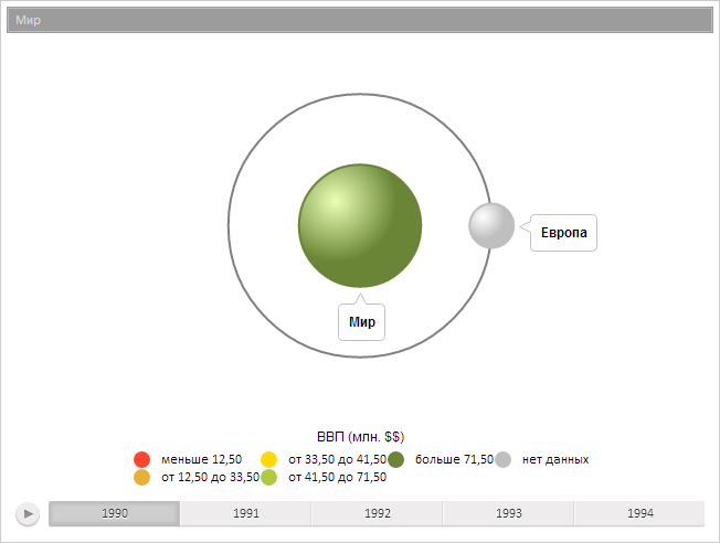 В результате выполнения примера была установлена новая ориентация диаграммы, был изменен минимальный размер пузырьков диаграммы: