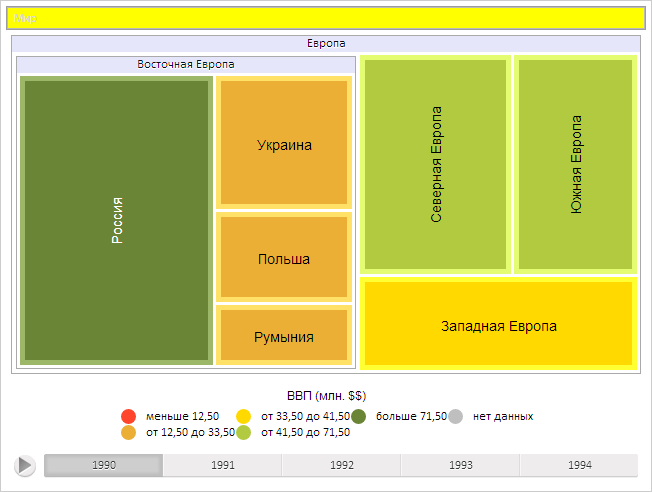 Для выполнения примера предполагается наличие на странице компонента TreeMap с наименованием «treeMap» (см. «Пример создания компонента TreeMap» ). Установим новый фоновый цвет элементов цепочки навигации и обновим её, обработаем события ItemClicked и ItemClicking: