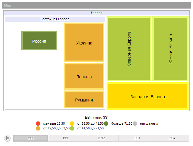 Для выполнения примера предполагается наличие на странице компонента TreeMap с наименованием «treeMap» (см. «Пример создания компонента TreeMap» ). Перестроим элемент, установив для него новые целевые значения позиции и размера, рассчитаем кадр анимации и обновим значения позиции и размера элемента: