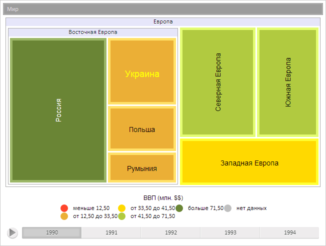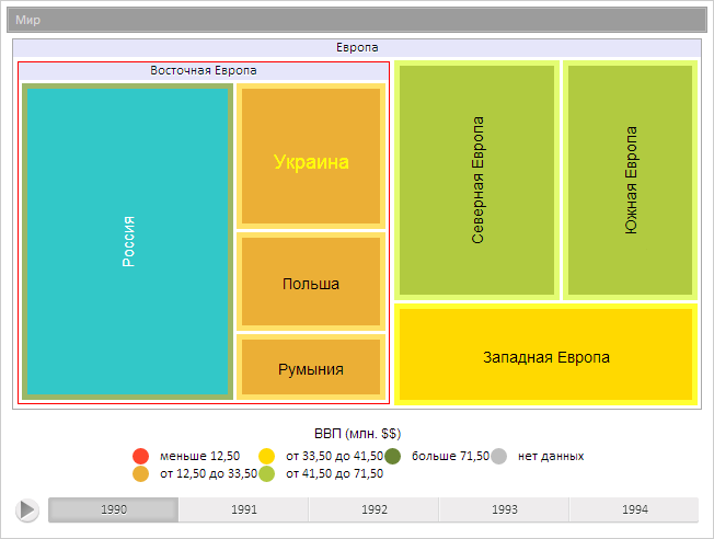 Для выполнения примера предполагается наличие на странице компонента TreeMap с наименованием «treeMap» (см. «Пример создания компонента TreeMap» ). Установим новый цвет ветви с индексом 2, установим новый фоновый цвет листа с индексом 3. Изменим цвет и размер шрифта элемента с индексом 4 и обновим его содержимое: