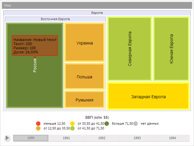 // Получим элемент диаграммы с индексом 3 var item = treeMap.getSceneItems()[3]; // Получим значения настроек элемента диаграммы var values = item.getValues(); // Изменим значение настройки имени элемента values.Name = "Новый текст"; // Установим новые значения настроек item.setValues(values); // Отобразим всплывающую подсказку item.showTooltip();