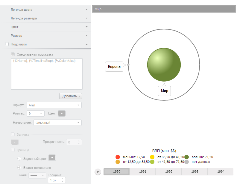 После выполнения примера на странице будет размещено пузырьковое дерево и мастер для его настройки: