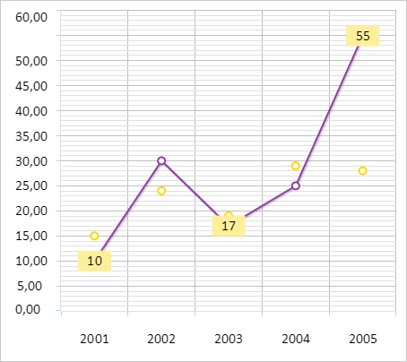 В результате выполнения примера для точек первого ряда данных с индексами 0, 2 и 4 были отрисованы подписи данных со значениями этих точек: