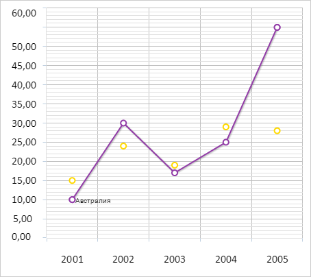 В результате выполнения примера для первого ряда данных диаграммы было отрисовано его наименование: