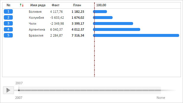 В результате выполнения примера элементы рейтинговой диаграммы были отсортированы по возрастанию значений из столбца «План»: