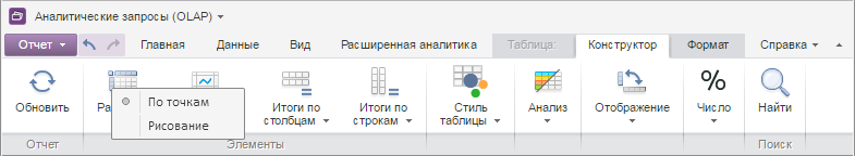 // Получаем представление вкладки «Таблица» var category = expressBox.getRibbonView().getTableCategory(); // Получаем объект с настройками var menu = category.getChartEditingMenu(); // Отображаем меню menu.showContext(100, 80);