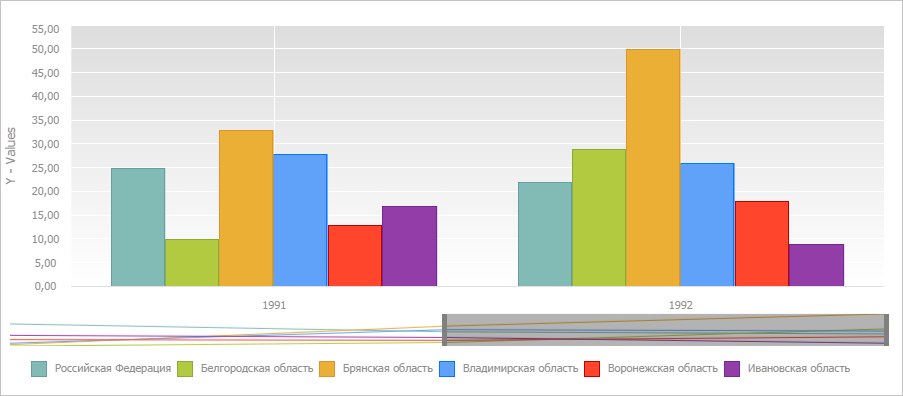 В результате данные были отображены для шагов «1991» и «1992»: