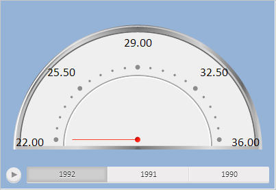 В результате выполнения примера для заливки фона спидометра был установлен светло-голубой цвет:
