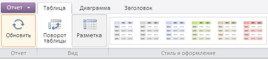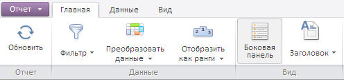 Для выполнения примера необходимо наличие на html-странице компонента ExpressBox с наименованием «expressBox» (см. Пример создания компонента ExpressBox). Скроем вкладки «Главная», «Данные», «Вид» и покажем следующие вкладки: «Таблица», «Диаграмма», «Заголовок» на ленте инструментов: