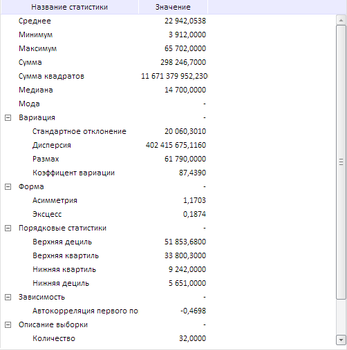 В результате выполнения примера была изменена ширина столбцов «Название статистики» и «Значение»: