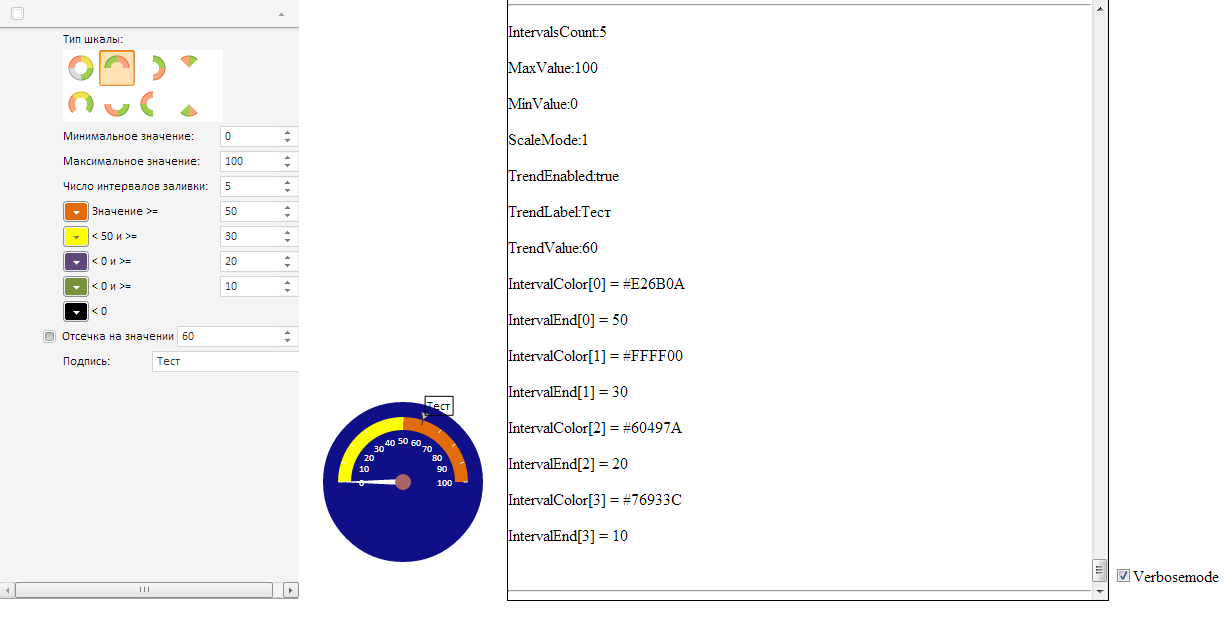 При изменении свойств спидометра в мастере в текстовое окно будут выведены настройки спидометра: