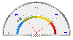 В результате выполнения примера в шкалу был добавлен новый указатель и заменен существующий указатель. Был изменен цвет текстовых меток шкалы и размер главного и дополнительного маркера с указанными индексами: