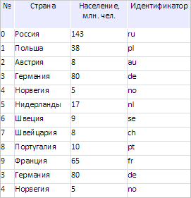 Для выполнения примера необходимо наличие на html-странице компонента DataGrid с наименованием «grid» (см. «Пример создания компонента DataGrid»). Добавим повторно ряды данных с индексами 3 и 4: