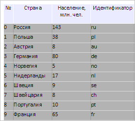Для выполнения примера необходимо наличие на html-странице компонента DataGrid с наименованием «grid» (см. «Пример создания компонента DataGrid»). Выделим все строки таблицы: