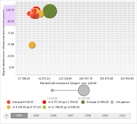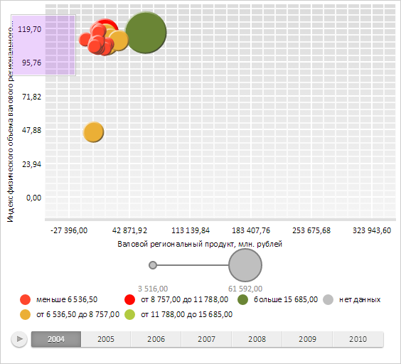Для выполнения примера необходимо наличие на html-странице компонента BubbleChart с наименованием «bubbleChart» (см. «Пример создания компонента BubbleChart»). Создадим новую рамку выделения с другим фоновым цветом и добавим ее к пузырьковой диаграмме. Установим обработчик события перемещения курсора мыши для рамки выделения пузырьковой диаграммы и начнем отрисовку рамки выделения: