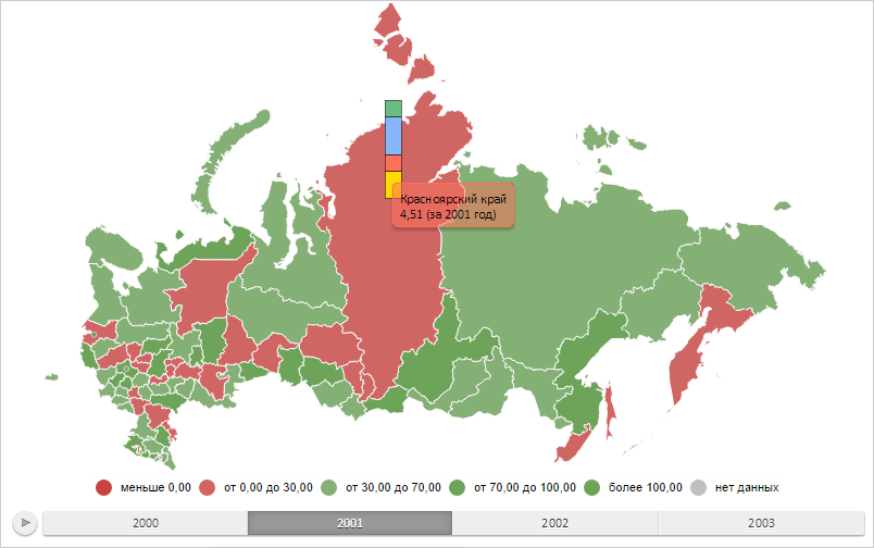 Всплывающая подсказка отображает данные для региона «RU-KYA» за 2001 год